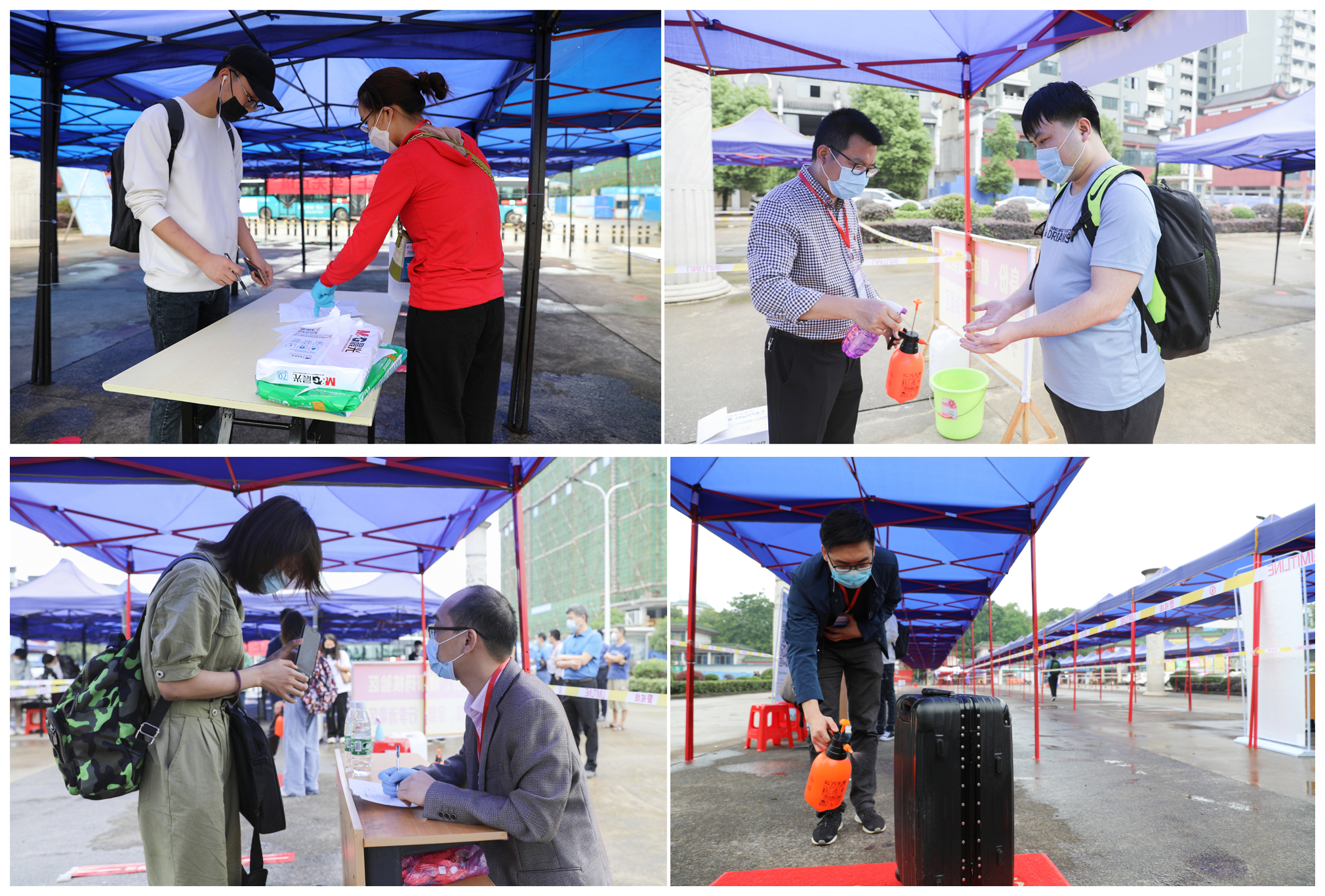 “不论你何时回,多晚回我们都等你。” 为了确保学生平安返校,学校在永州火车站、汽车北站设立返校工作站。5月20日晚间雨势渐大,滂沱大雨挡不住同学们返校的步伐,也挡不住师生迎接大家的热情。参与接站的老师和工作人员风雨无阻,冒着大雨在火车站前搭建帐篷,为同学们筑起“安全返校”的避风港,迎接返校的科院学子。风雨交加的深夜里,老师们的身影格外清晰。