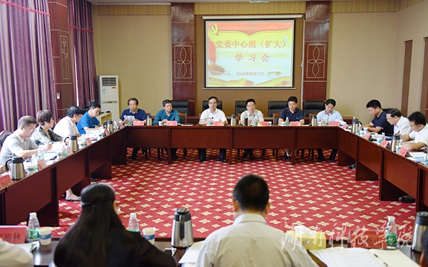 本网讯 9月1日,党委中心组(扩大)在行政办公楼八楼三会议室专题学习了习近平总书记在庆祝中国共产党成立95周年纪念大会上的讲话、省委组织部副部长胡奇在2016年全省普通高校领导干部暑期研讨班上的讲话、《中国共产党问责条例》、《湖南省普通高等学校党委领导下的校长负责制实施办法》和《新利·体育章程》等讲话和文件精神。校党委书记陈弘主持并讲话。