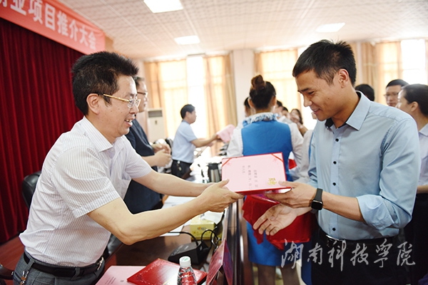 在创业项目推介活动上,蒋爱新等16名创业导师与永州市菌糠资源开发有限公司张星等34个创业项目负责人结成对子,深入交流、精心指导。