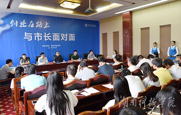 在“创业在路上,与市长面对面”活动中,刘尤碧副市长、相关政府部门领导及就业创业导师与我校创业学生代表进行面对面交流,就同学们提出的如何注册公司、税费减免、就业帮扶、创业贷款等问题一一进行解答。