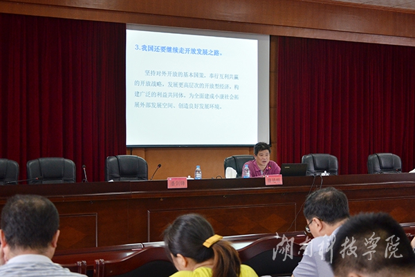 唐艳明从五大发展理念是一个系统性协同性的整体、五大发展新理念源于我党对中国与世界的深刻把握、以五大发展理念引领我国新的发展三个方面进行了阐述。他认为,理念是行动的先导;发展是人类社会永恒的主题,也是当代中国的首要任务。他指出,创新发展是动力、协调发展是方法、绿色发展是方向、开放发展是战略、共享发展是归宿。他强调,要切实增强领导干部落实五大发展理念的素养和能力:一是要增强用党的理论创新成果指导学校工作实践,推动学校工作的素养和能力。二是要增强把握形势变化,把握发展趋势的素养和能力。定大局、谋大事,前提是观大势、明大势。三是要增强驾驭高校发展,提高教育质量的素养和能力。四是要增强运用法治思维、法治方式推动学校发展的素养和能力。五是要增强贯彻“三严三实”要求,落实学校改革发展稳定任务的素养和能力。