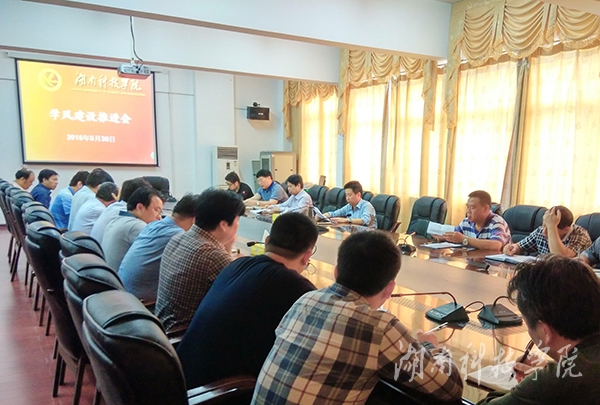 本网讯(通讯员 罗晶 张祥)5月30日下午,学校在行政办公楼六楼会议室召开学风建设推进会。校长曾宝成,副校长李常健、程智开及学风建设工作领导小组全体成员参与会议。