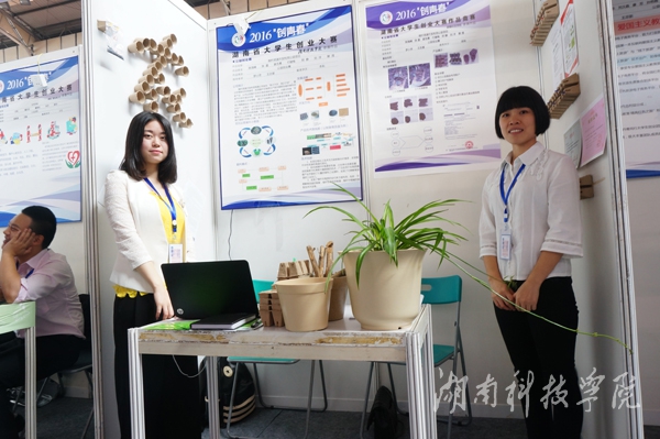 化学与生物工程学院陈海峰创业团队的《烟杆资源开发利用公益项目》由罗小芳、王志堂老师指导。该项目通过生物转化利用途径,利用烟杆生物质生产系列高附加值的绿色创新产品(可降解育苗盘、环保花盆、生物碳等),从而达到烟杆农林生物质高附加值利用,兼具经济性和环保性,获得专家评委的一致认可。现场答辩环节,学生从容应对,落落大方,获得好评,荣获金牌。