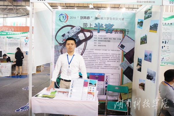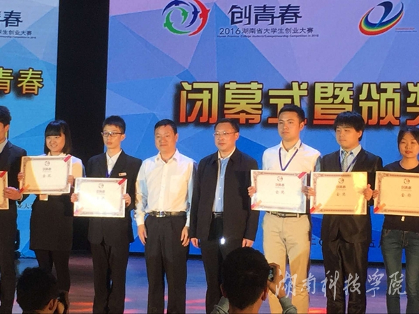 本网讯(通讯员 符小将) 5月23日,由团省委、省教育厅等七部门联合举办的2016年“创青春”湖南省大学生创业大赛决赛在长沙理工大学落下帷幕。我校参赛的《烟杆资源开发利用公益项目》获得金奖,《半客旅游APP》、《湖南女书文化有限公司》、《B—ECHO》、《唯美会》获铜奖。