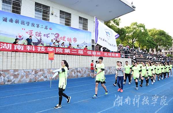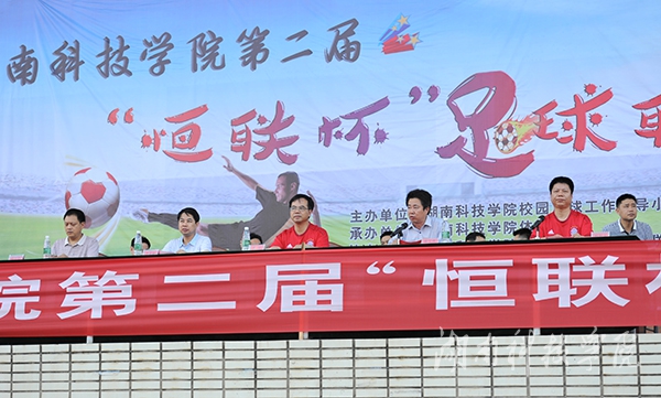 本网讯(记者 刘忠奇 肖浪 摄影 何帅文)5月7日下午,第二届“恒联杯”足球联赛开幕式在田径场举行。校党委书记、校足球运动领导小组组长陈弘,校长曾宝成,副校长、校足球运动领导小组副组长李常健、程智开及长沙恒联计算机有限公司董事长邓自义等领导和嘉宾出席,并为此次联赛开球。开幕式由程智开主持。