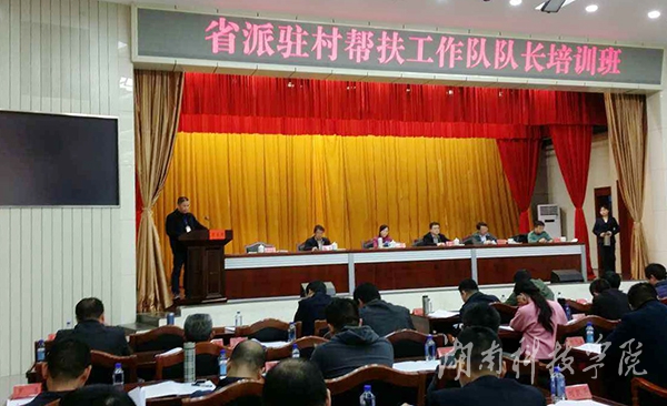 本网讯(通讯员 凤 仞)3月22日至24日,省扶贫办、省委基层党建办在吉首市举办全省驻村帮扶工作培训班,对300余名一线扶贫干部进行培训。我校扶贫工作队长贺幸福参加培训并在会上代表学校作典型发言。
