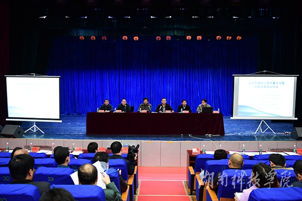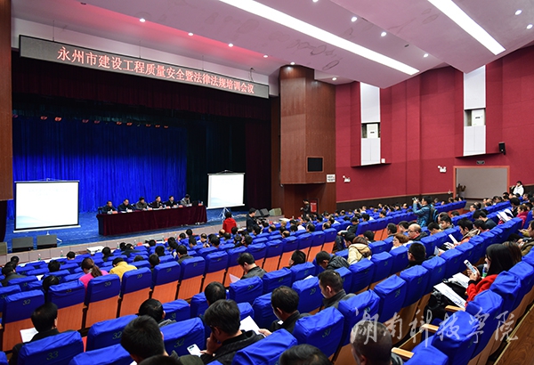 本网讯(通讯员 廖群峰 摄影 何帅文)11月27日至28日,永州市建设工程质量、安全及法律法规培训会议在我校举行。永州市副市长张常明出席,副校长郑山明出席并致辞,永州市住房和城乡规划建设局党组成员、副局长蒋志刚主持会议。共有来自永州市各建筑部门及企业的450名代表参会。