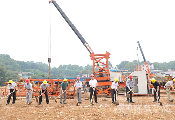 本网讯 金秋时节,丹桂溢香,我校又一民生项目正式开工。9月29日上午,校领导陈弘、曾宝成、宋宏福、郑山明、李常健、吴小林、袁先友等来到桂园新村公租房工地,挥锄为222套公租房开工奠基, 为即将召开的党代会献上一份厚礼。