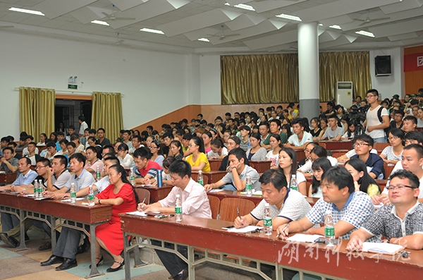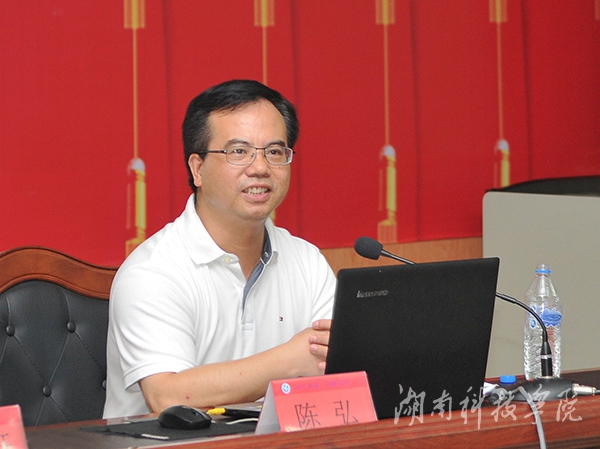 他随即向新生抛出两个问题:大学是什么?为什么要上大学?他说,这是大家要用四年时间一起来求解的问题。大学是什么?他引用蔡元培、梅贻琦的语录,指出,大学的“大”,是一种海纳百川的宏大气象;而“学”则是学校的根本,它包括学生学者学习、学术学问学风。一所好的大学,需要时间的积淀,更需要空间的滋养,他带领同学们回顾了学校的办学历史,由远及近,从湖南到永州,谈及西山、柳子庙、朝阳岩、潇水,向同学们介绍了学校与众不同的文化地理环境。他说,一所大学的精神气质和文化内涵与所处地区息息相关,他向新生诠释了经世致用,敢为人先的湖湘文化核心,并对永州的“永”字作出了释义。他将永州比喻成一位受过良好教育的大家闺秀,淡定从容,优雅精致,是一块读书成才的风水宝地。陈弘娓娓道来,现场不时爆发出阵阵掌声。
