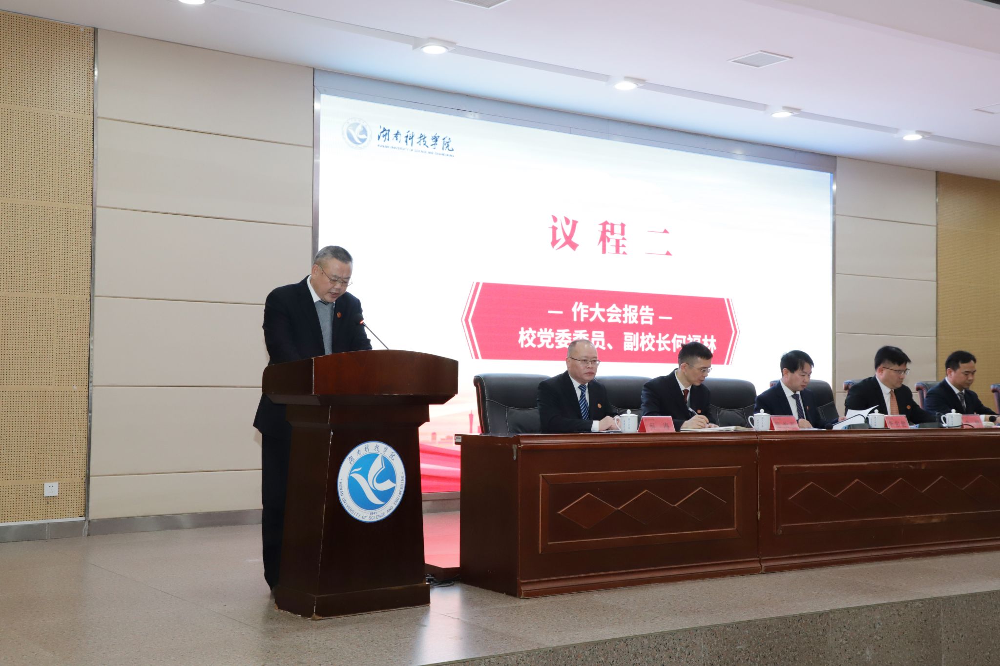 何福林作题为《大力弘扬教育家精神 锚定立德树人根本任务 持续推进教育教学综合改革 全面提升人才自主培养质量》的大会报告,他总结回顾了学校近三年的教学工作,明确了今后三年学校教学工作的基本思路、主要任务和措施。他指出,学校要锚定“立德树人”根本任务,持续推动教育教学改革,不断优化人才培养模式和课程体系,着力培养学生的理想信念、创新精神和实践能力,努力开创人才培养和教学工作新局面。在做好常规教学工作的基础上,要重点抓好以下八个方面的工作:一是更新教育教学理念,做好顶层设计;二是强化教师队伍建设,打造一流师资团队;三是狠抓专业建设,构建优势明显、特色鲜明的专业体系;四是加强课程教材建设,不断提升教学质量;五是加强教育数字化建设,赋能教育教学改革;六是强化实践教学,提升学生应用能力;七是全面推进审核评估,着力涵养质量文化;八是强化学校社会服务职能,助力永州基础教育高质量发展。