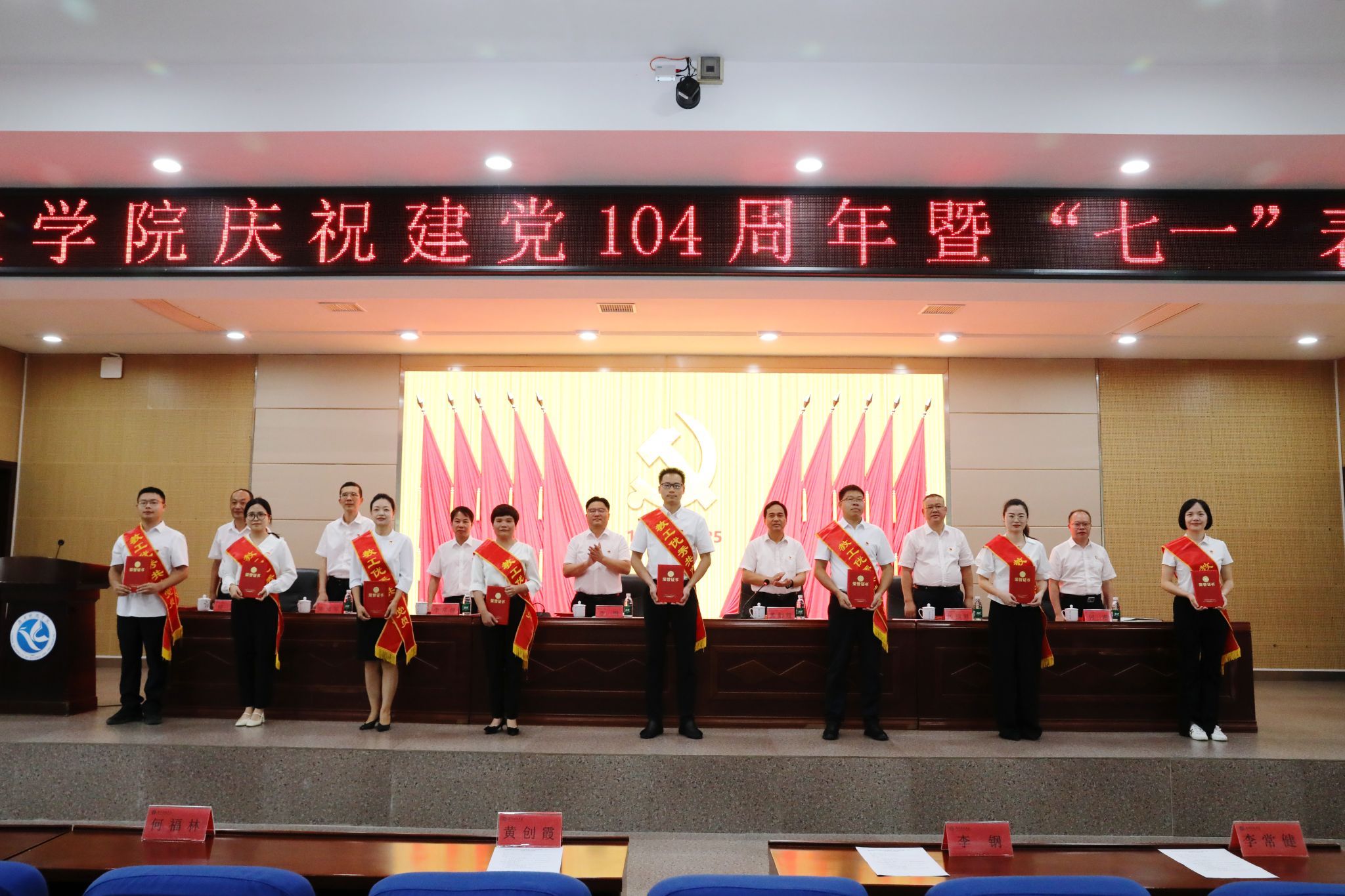 党委委员、副校长李常健宣读“七一”表彰决定,对“光荣在党50年”纪念章获得者,全国高校“双带头人”教师党支部书记“强国行”专项行动团队,全省高校党组织“对标争先”建设计划第四批项目获评单位及个人,学校先进直属党组织、教师党支部书记“双带头人”标兵、党务工作示范岗、青年教工党员示范岗、优秀党务工作者和优秀共产党员提出表彰。