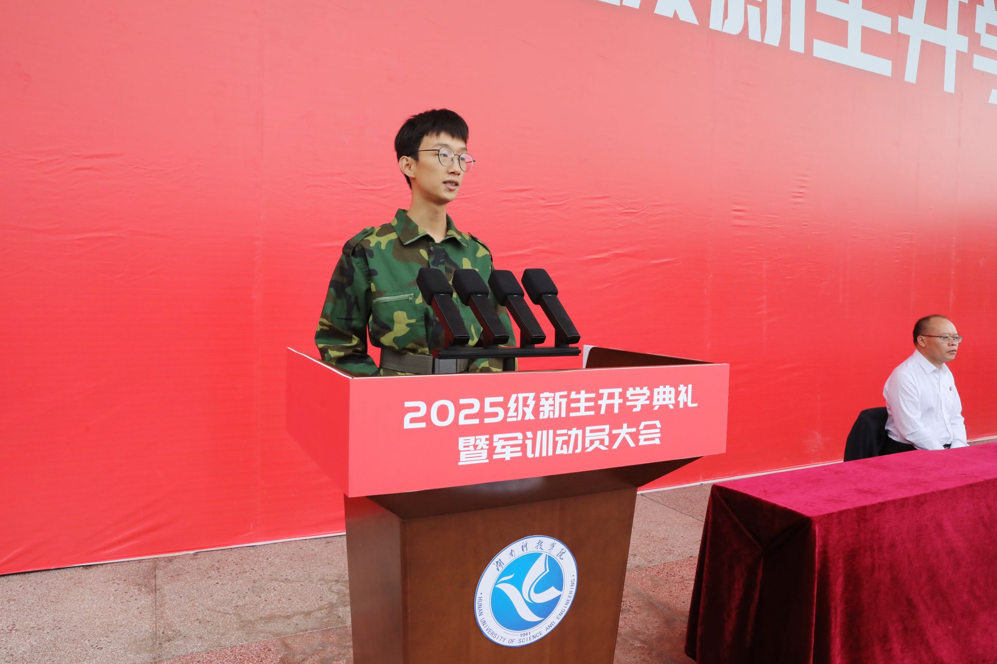 新生代表、智能制造学院智造工程2503班张宏啓同学表达了对大学生活的憧憬与承诺,呼吁全体新生以包容协作的态度融入集体,以专业学习筑牢根基,以实践探索拓宽视野,共同书写2025级新生们的青春篇章。