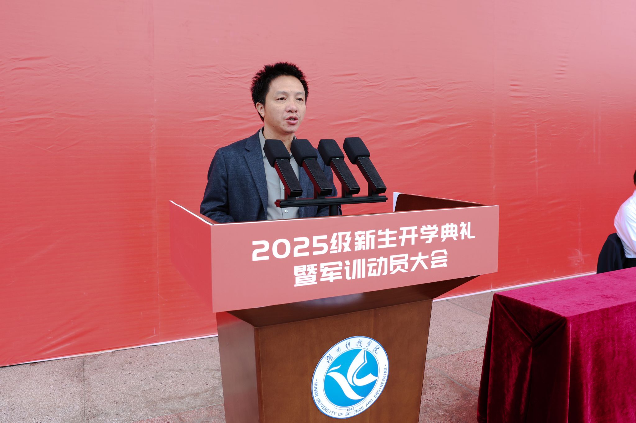 本网讯(记者 彭尧煜)西山叠翠迎新生,潇水欢歌启新程。9月22日上午,学校在田径场举行2025级新生开学典礼。校党委书记李钢,党委副书记、校长黄创霞,校领导李常健、何福林、陈灿军、郑银芳、何海,党委委员、组织部部长杨涛出席典礼。典礼由杨涛主持。