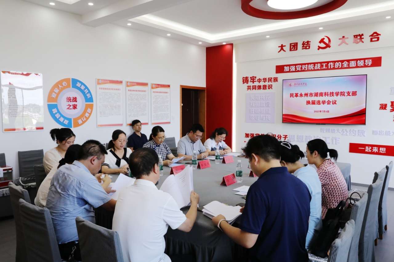 本网讯(通讯员 唐良玉)7月4日下午,民革新利·体育支部召开换届选举大会。会议选举产生了以方芳为主委,唐良玉为副主委、刘晓霞为委员的第四届支部委员会。副校长郑银芳、民革永州市委会有关负责同志、学校宣传统战部相关负责人及全体支部党员参加会议。