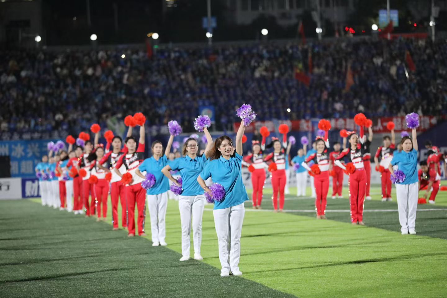 在动感十足的音乐节奏下,队员们手持花球,动作时而刚劲有力,时而柔美舒展,队形变化流畅而富有创意,活力四射的舞步、极具感染力的笑容,与现场球迷的欢呼声、掌声交织在一起,将球场气氛推向高潮。