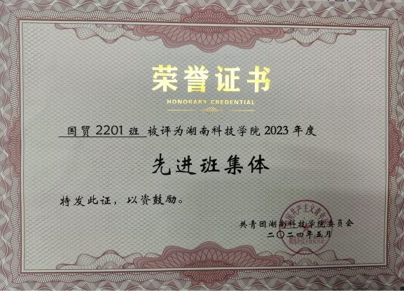 国贸2201班喜获“十佳学风班级...