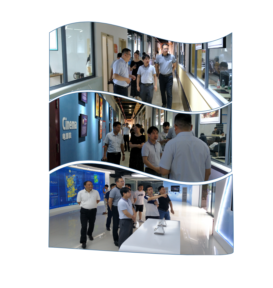 李常健副校长一行实地考察了动画学院与凤凰传媒教育共建的“凤凰教育高校数字媒体产教融合创新应用示范基地”,了解其合作机制和运行模式。还考察了“创新创业园”、“智慧城市和智慧校园”等项目。