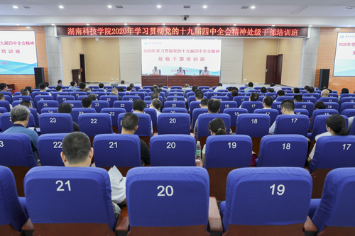 培训班上,曾宝成、李钢、唐艳明、彭立威、吴小林分别以《后疫情时代的全球巨变——中国以制度优势化危为机》《加快推进我校治理体系和治理能力现代化》《贯彻落实党的十九届四中全会精神,推进我校治理体系和治理能力现代化》《严守“六项纪律”,擦亮干部底色》《统一认识,压减预算》为题作主题报告。