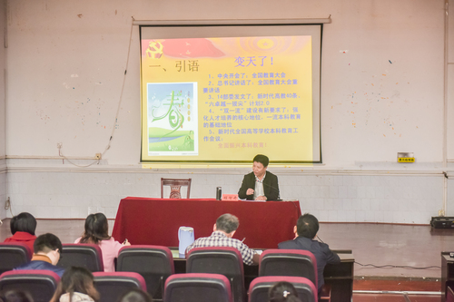 程智开指出应该从“11122345569”去领会全国教育大会的精神实质,把握其鲜明特点和重大意义。即:围绕一个“目标”,明确一个“根本任务”,强调一条生命线,明确教育的两个地位,阐明了教师的两个位置,着重培养三种人才,家庭要做到四个“一”,坚决克服五个“唯”,强调五个“人”的工作目标,要在六个方面“下功夫”,阐述九个“坚持”。他认为,要努力开创我校教育新境界,必须打牢自身根基,把握主航向,做好“严、实、强”三篇文章。