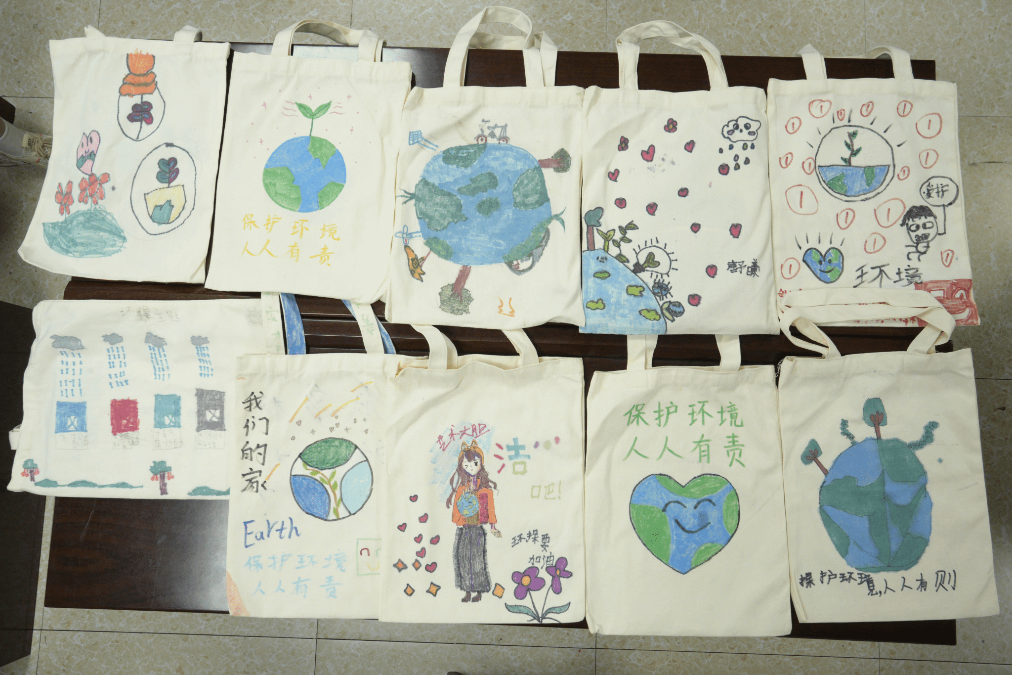 在志愿者的指导下,孩子们还拿起画笔,在环保袋上自由创作。有的用色彩斑斓的图案清晰描绘垃圾分类的流程,有的则勾勒出鸟儿在绿树间欢歌、人与自然和谐共生的美好愿景。创作完成后,孩子们踊跃分享自己的“绿色宣言”:“我画了小鸟的家,要告诉大人不要砍树!”“我的环保袋提醒大家,电池是有害垃圾,不能乱扔!”