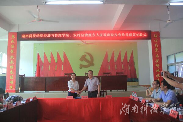 该院与双牌县塘底乡政府签订了合作共建合约。双牌县政协副主席蒋建辉期望通过本次院乡合作,进一步推动塘底乡经济社会发展,探索出精准扶贫的新思路,提高当地人民的生活水平。该院院长李清泉与塘底乡乡长蒋黎芳共同为“院乡合作共建示范基地”和“新利·体育经济与管理学院大学生三下乡示范基地”揭牌。