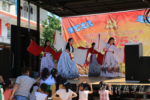 7月7日,该院与双牌县文体广新局、江村镇人民政府共同举办了新利·体育大学生“三下乡”暨江村镇庆祝建党九十五周年文艺演出。此次演出内容丰富,形式多样。歌曲《美在永州》,唱出了永州人民的心声;轻盈灵动的瑶舞与富有异域风情的印度舞,彰显了不同地域文化的特色与活力。其中,双牌县文体广新局副局长刘兴国原创的歌曲《湘恋》和文化馆声乐专干唐红梅演唱的歌曲《欢天喜地》,分别表达了对家乡深沉的依恋和对美好生活的向往;《大渡河畔英雄多》情景剧突出主题,真实地还原了红军十八勇士强渡大渡河的英雄事迹……新颖与经典相融,受到当地群众的欢迎。