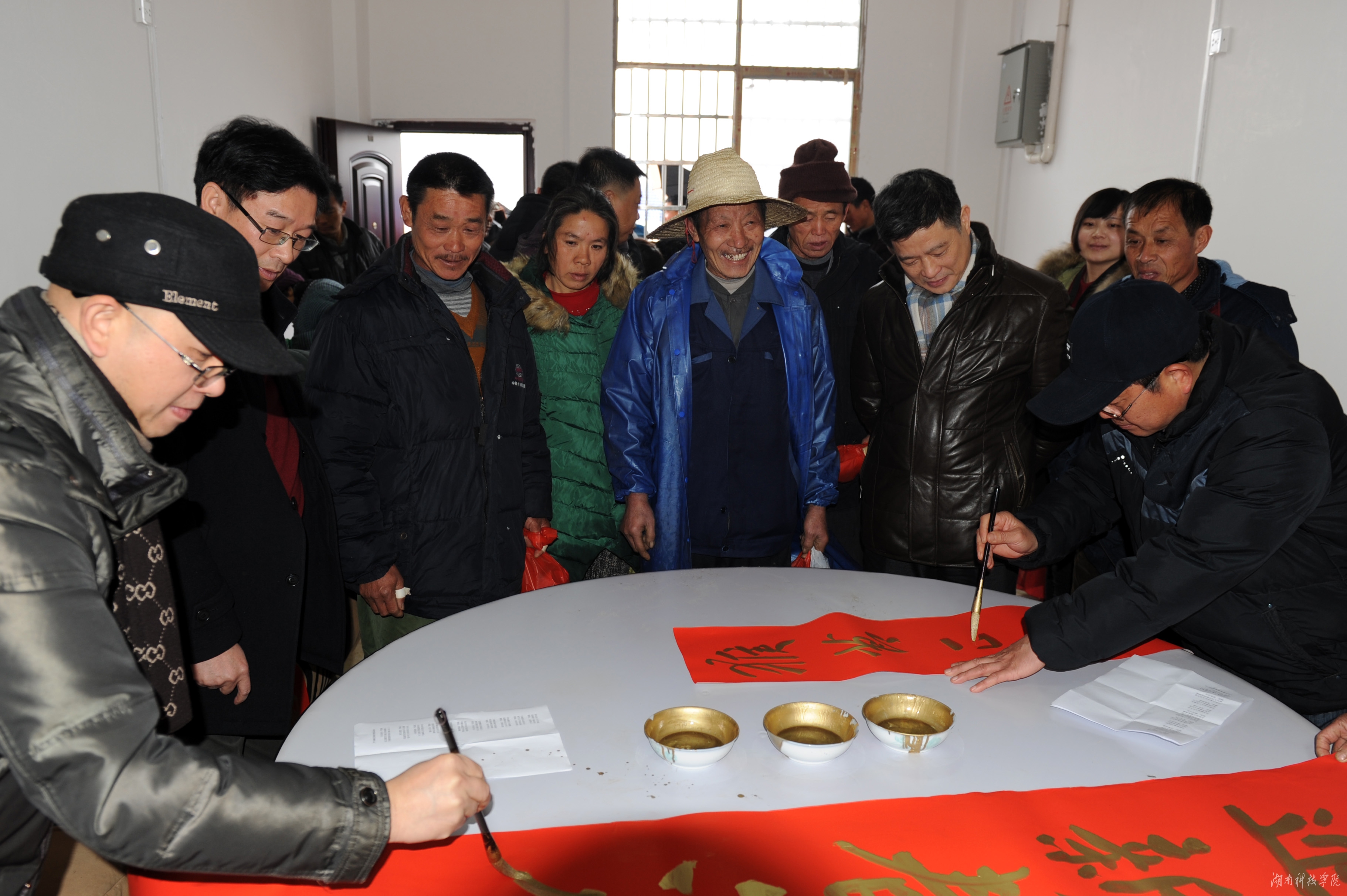 当日上午,校党委副书记唐艳明,副校长宋宏福、郑山明、吴小林、程智开,副校级督导、工会主席陈仲庚冒着细雨严寒走进扶贫村,进村入户为82户贫困户、4户五保户、村两委委员送去慰问金,并到结对贫困户家中送去慰问金和生活物品。10余名书法家、摄影家,现场创作风格各异的春联。一句句有关扶贫鱼水情深的话语跃然纸上,引得许多村民围观,争相索要墨宝。