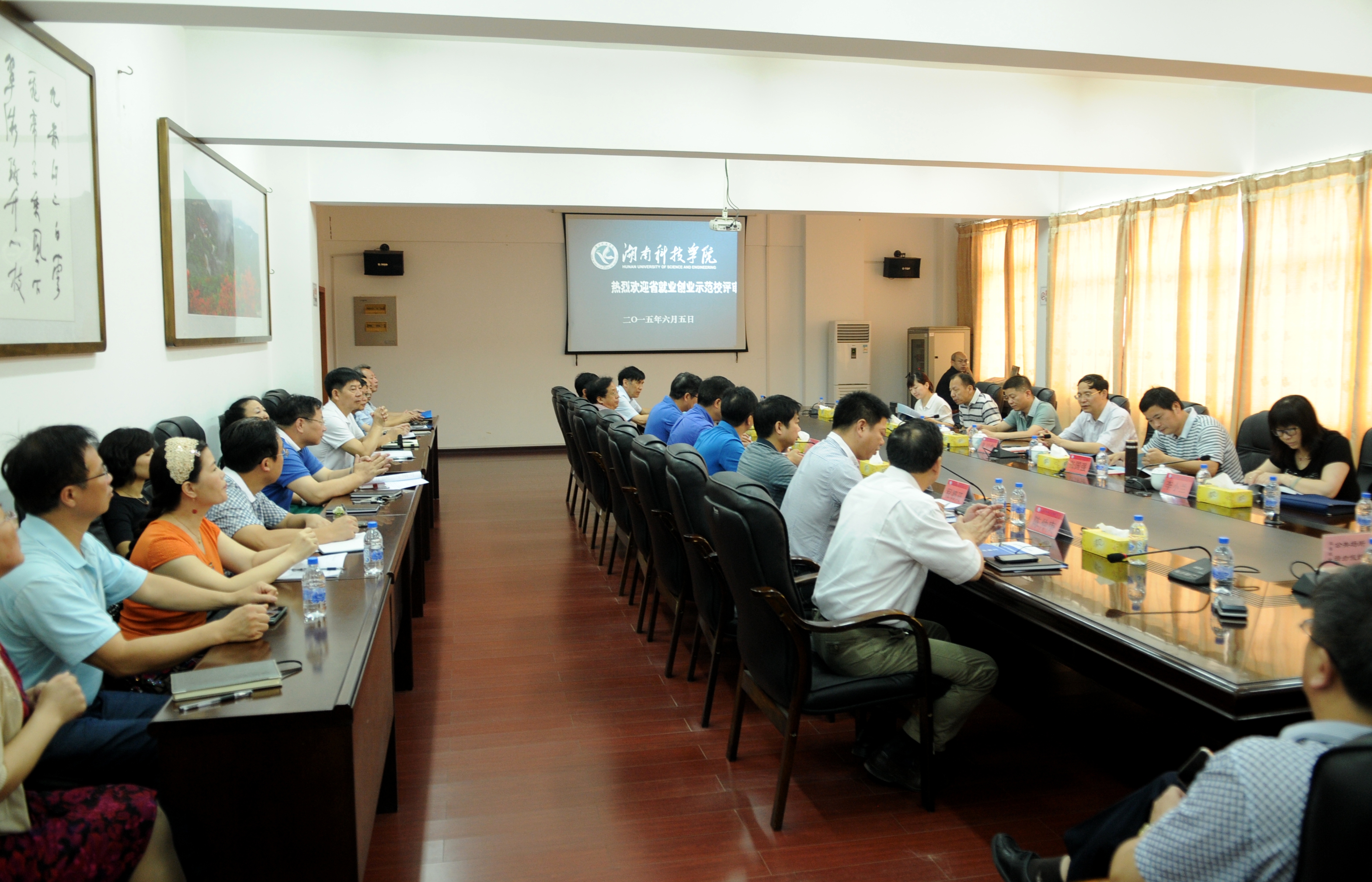 本网讯(记者 段坤 李瑞 摄影 秦峰)6月5日,以湖南科技大学党委副书记朱川曲为组长的省教育厅高校就业创业示范校评审专家组莅临我校,对我校进行省“就业创业示范校”现场考察评审。通过听取汇报、召开座谈会、查阅资料和现场走访等环节,专家组对我校大学生创业就业工作表示高度肯定。