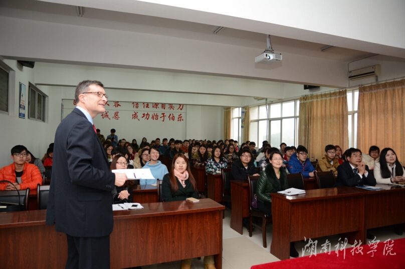 应广大师生要求,两校洽谈签约后,鲍尔温一行还兴致勃勃地与我校100多位师生面对面交流,现场接受赴英留学相关事宜的咨询。
