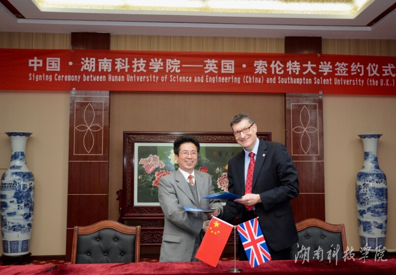 本网讯(记者 李瑞 胡刘庆 摄影 张志强 张红星)新学期伊始,我校对外合作办学迈出坚实步伐。3月15日,英国南安普顿索伦特大学代表团来访,与我校就教师培训、师生互访等合作交流具体事项交换意见、达成共识,签署教育合作协议,现场接受师生咨询。