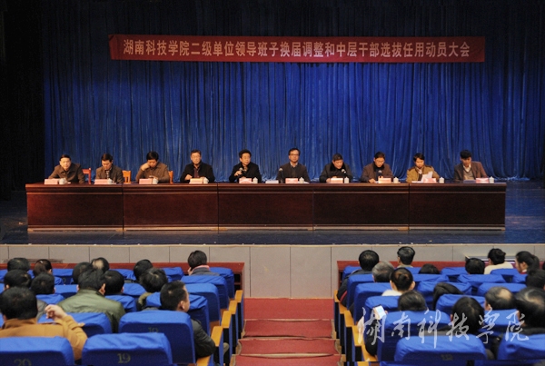 本网讯(记者 乐为 摄影 何帅文)1月17日上午,学校二级单位领导班子换届调整和中层干部选拔任用工作动员大会在音乐楼演播厅举行。校党委书记陈弘作动员讲话,校党委副书记唐艳明就《新利·体育二级单位领导班子换届调整和中层干部选拔任用实施方案》进行了全面解读。会议由校长曾宝成主持。