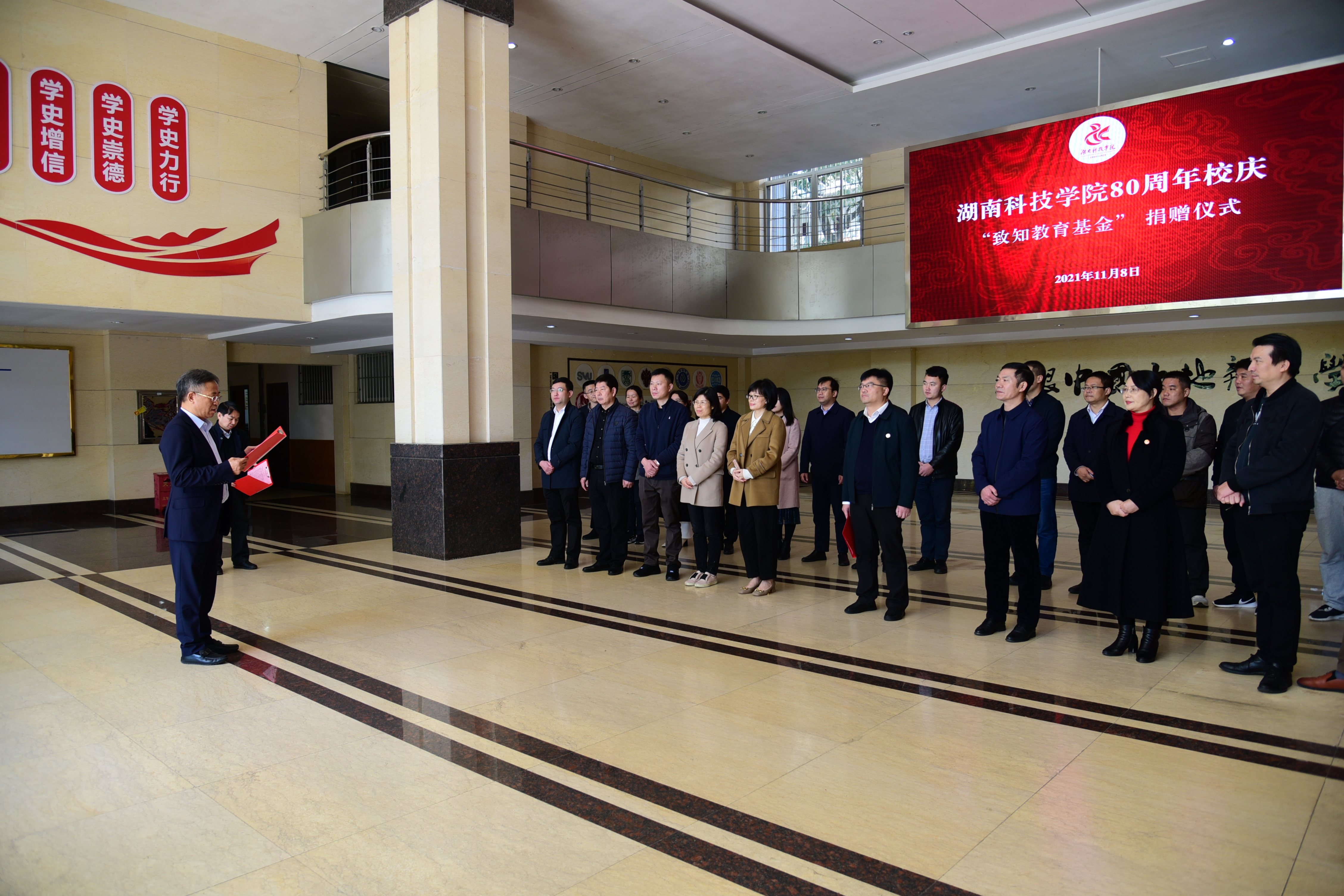 蒋友安表示,该基金在学校继续教育学院王志堂老师的积极倡议下发起成立。旨在支持学校“五育并举”人才培养,奖励和资助德智体美劳全面发展的优秀大学生。基金取名为“致知”,源于曾子的《大学》——“欲诚其意者,先致其知,致知在格物”。他希望同学们能努力学习,专心钻研学问,培养专业技能,做到有学养,专业扎实和通透。达到致知的境界,每一位同学都会成为社会、企业的抢手人才。同时,他希望意华股份能为学校更高质量地培养学生,做出应有的努力。
