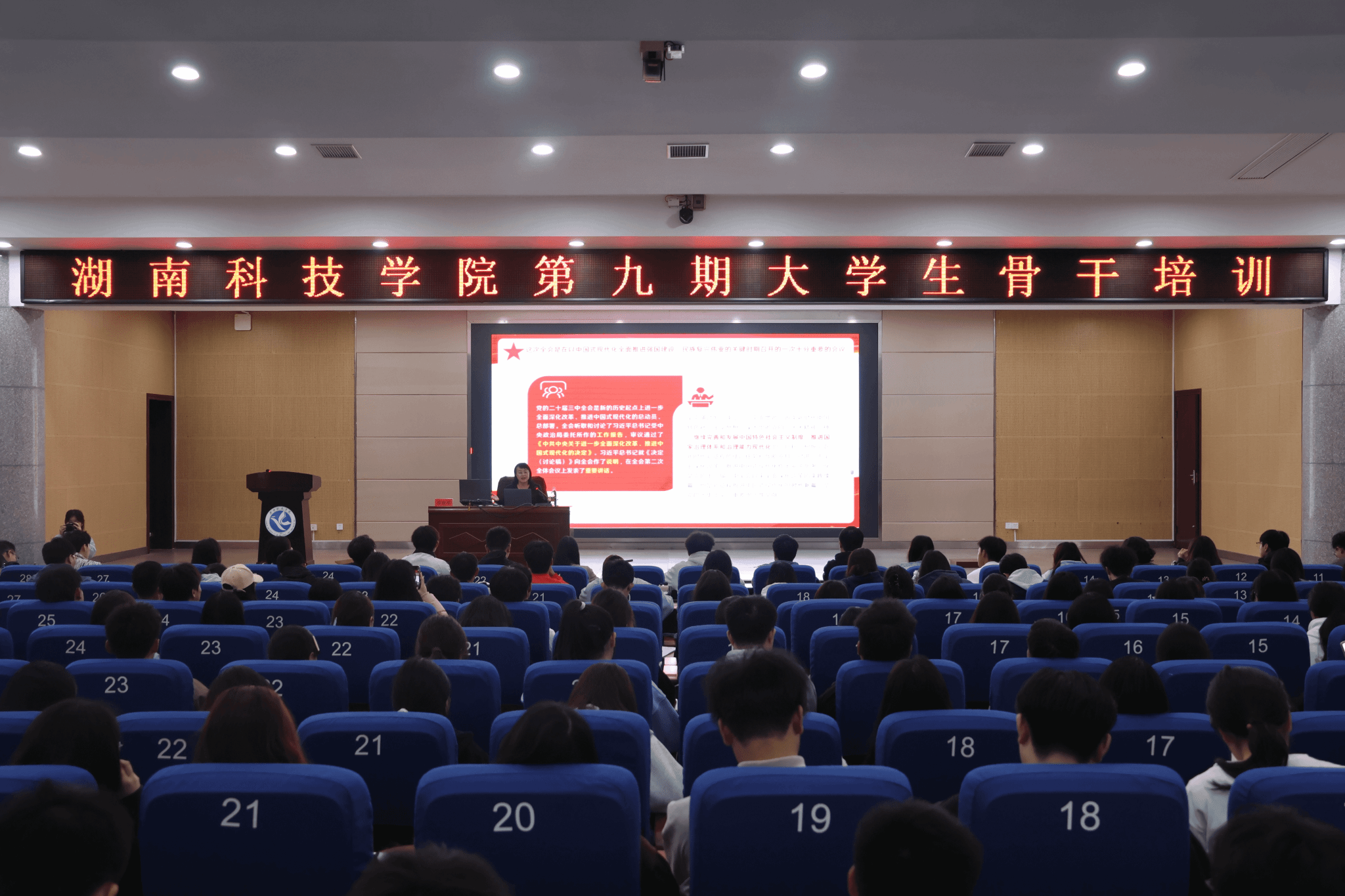 本网讯(通讯员 杨喆 王念尔 邱佳朋)近日,我校第九期大学生骨干培训班在潇湘大讲堂举行。校级各学生机构,各学院学生会、团总支主要学生干部共600余人参加培训。