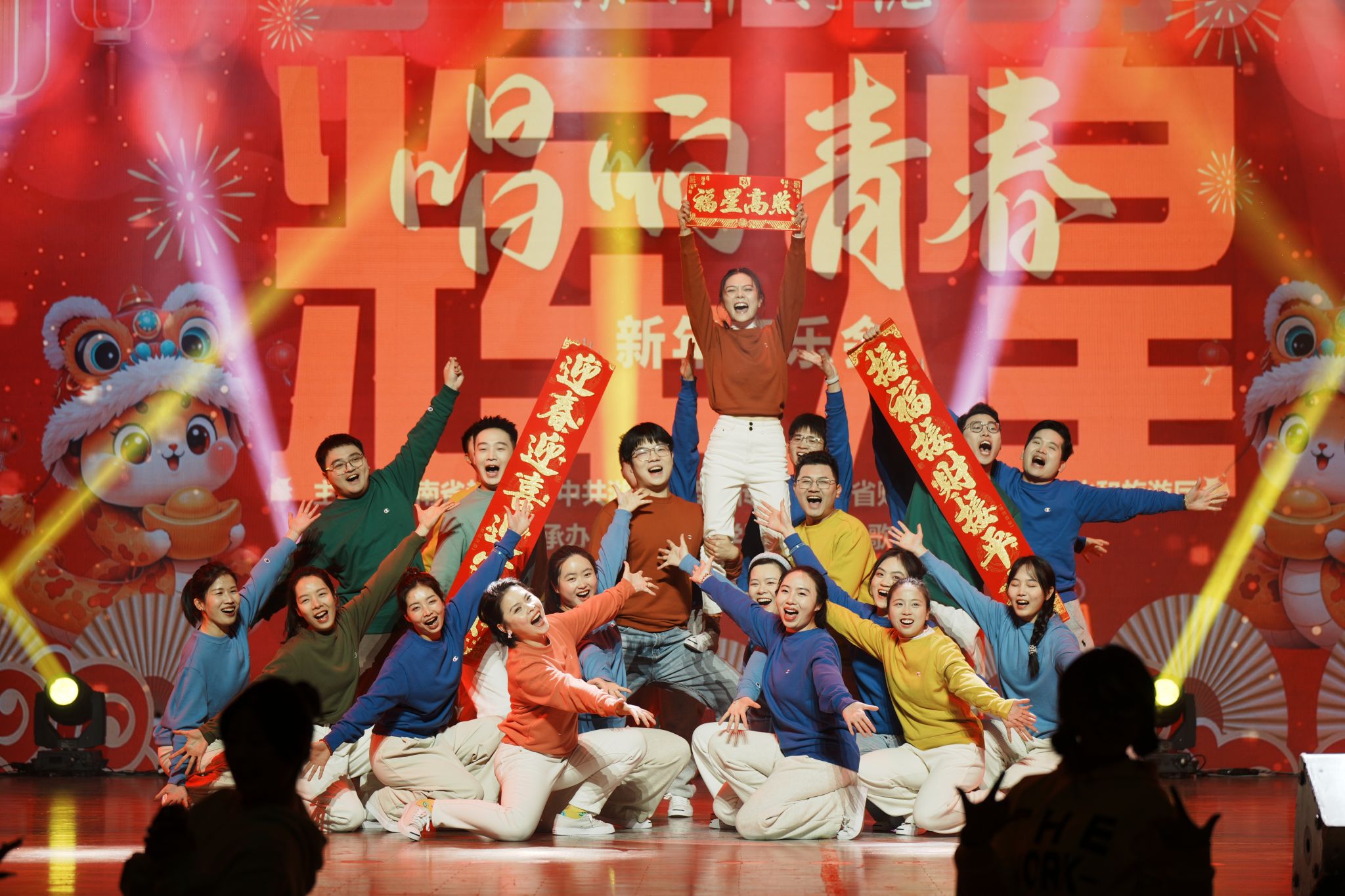 我校老师还带来歌伴舞《教师阵线联盟》,展现出老师们活力四射的一面;体育学院武术队带来的《武韵流金》,展示了中华武术的雄浑气魄。最后,演出在混声四重唱《领航》的雄浑深情中落下帷幕。
