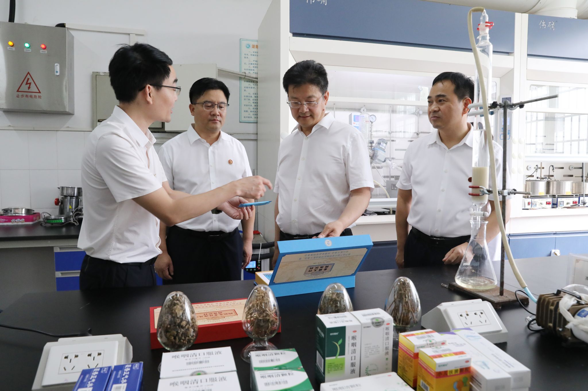 陈爱林一行来到我校化学与生物工程学院,详细了解市十大科技创新项目——“中药大品种培育研究与应用”项目在产品研发、技术创新、转化推广等方面的进展情况。随后召开座谈交流会。陈爱林表示,科技创新是引领高质量发展的强劲动力。要深入开展“政校企”一体合作,支持具有核心竞争力的企业与新利·体育组建创新联合体,实现共建共享、合作共赢。要坚持企业创新主体地位,聚焦市场需求,引导企业加大研发投入,加强技术攻关,推动“科创链与产业链”融合发展。要精准精细服务企业发展,帮助企业解决实际困难,特别是要帮助专精特新企业提高创新能力,更好发挥引领作用。要大力推进十大科技创新项目建设,以科技创新引领产业创新,不断培育新动能塑造新优势,力争在打造具有核心竞争力的科技创新高地上发出更多永州声音。