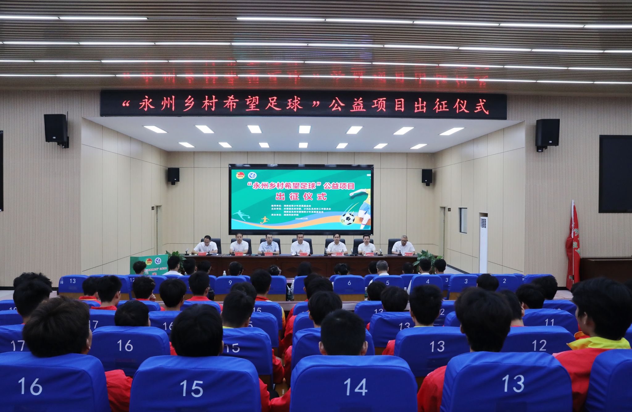 “永州乡村希望足球”公益项目由共青团永州市委、永州市少工委、永州市青基会联合发起,由我校体育学院提供技术支持,由市青基会提供专项经费保障,由项目承接县市区配合实施。据悉,项目第一期承接县为新田县,体育学院选派的10名足球专业大学生志愿者将入驻新田县10所乡村小学开展为期2个月的支教活动,为支教学校带训出一支少年足球队,并在支教结束后协助县区组织10所支教学校举办一轮足球联赛。