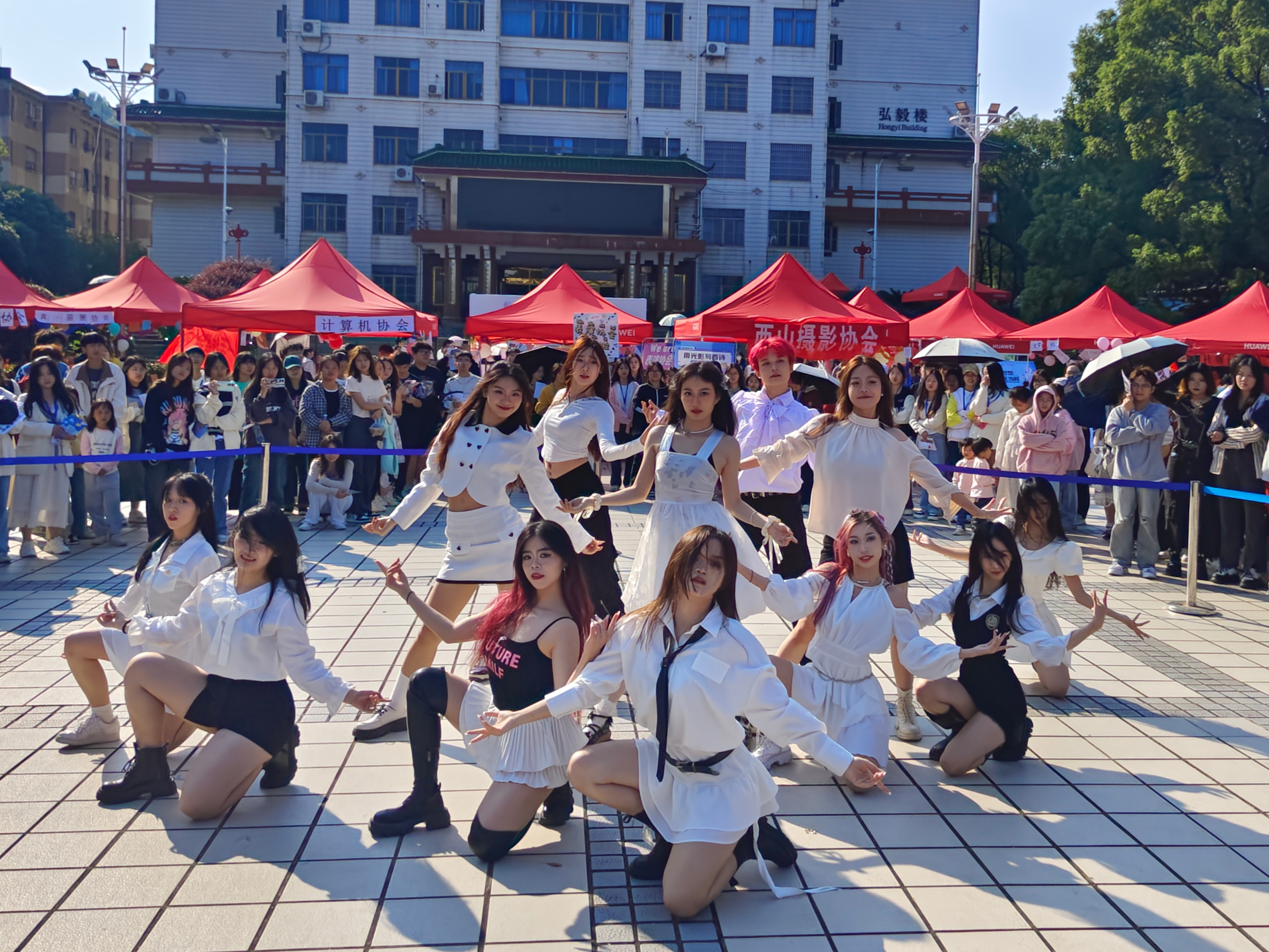 飞翔轮滑协会在会场中间表演起花式轮滑,各种高难度的动作令人称奇;ACG动漫协会的成员们精美的cosplay服装引人围观拍照;散打上演了一场肌肉与力量的视觉盛宴;交谊舞协会律动青春,歌声美妙;更有中国画协会协会展出的精美字画作品……多场表演让人应接不暇,流连忘返。