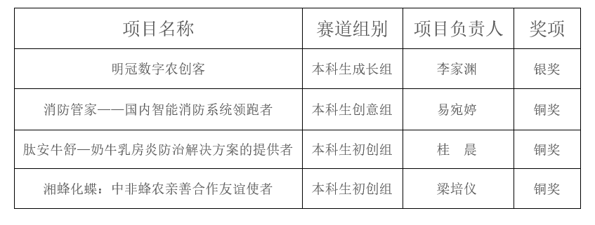 本网讯(记者 龙泉)近日,第九届湖南省“互联网+”大学生创新创业大赛落下帷幕。经过激烈角逐,我校获银奖1项,铜奖3项,其中《明冠数字农创客》项目将代表湖南参加国赛。