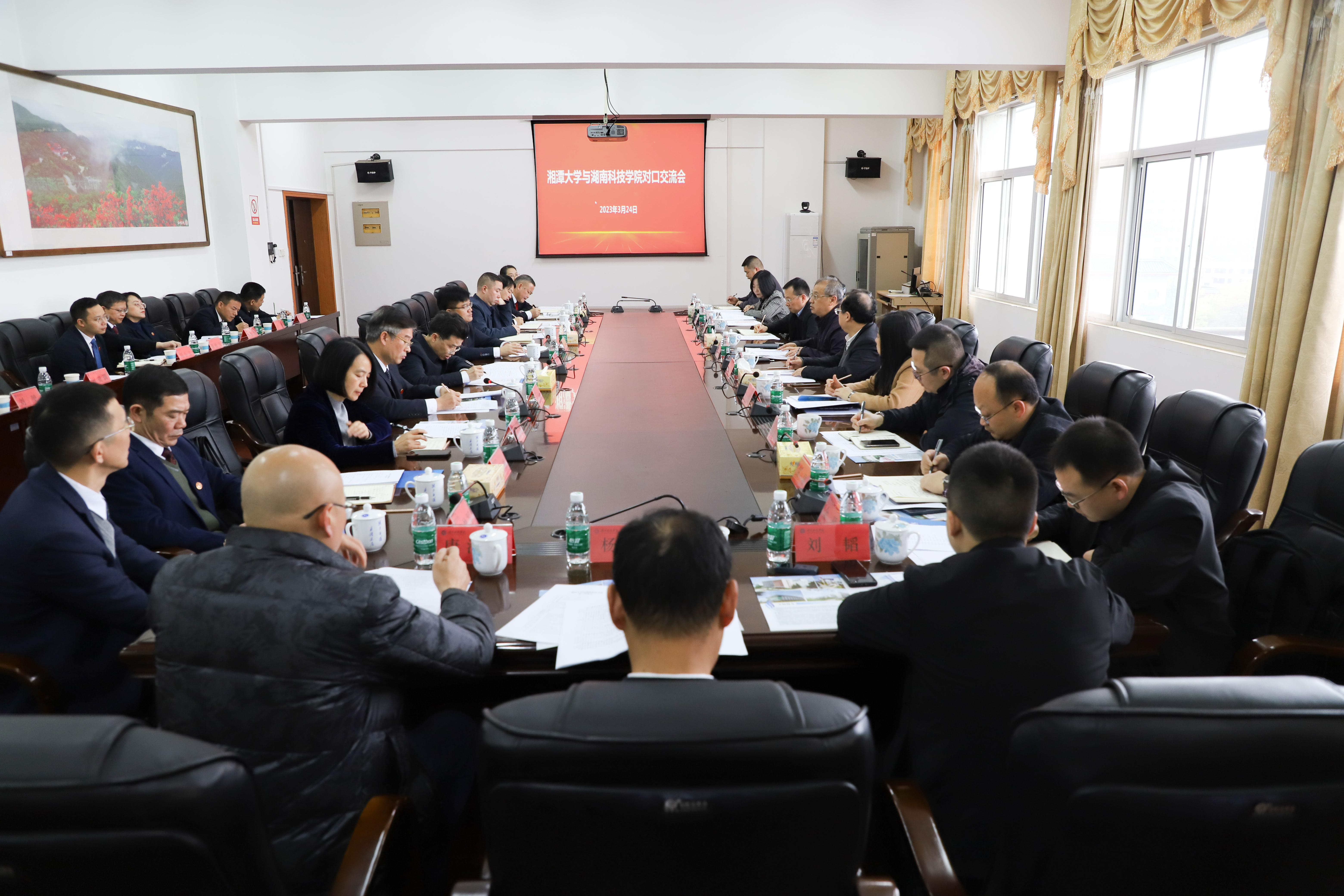 本网讯 3月24日,湘潭大学与新利·体育开展2023年对口支援合作交流座谈会。湖南省政协副主席、民进湖南省委会主委、湘潭大学校长潘碧灵,湘潭大学党委委员、副校长刘建平,永州市政协党组成员、副主席蒋井泉,永州市教育局局长黄赞校,民进永州市委会主委、零陵区副区长陈丽萍,我校党委副书记、校长李钢,校领导宋宏福、李常健、吴小林、何福林、陈灿军、郑银芳,党委委员、组织部部长杨涛出席会议。会议由党委副书记宋宏福主持。