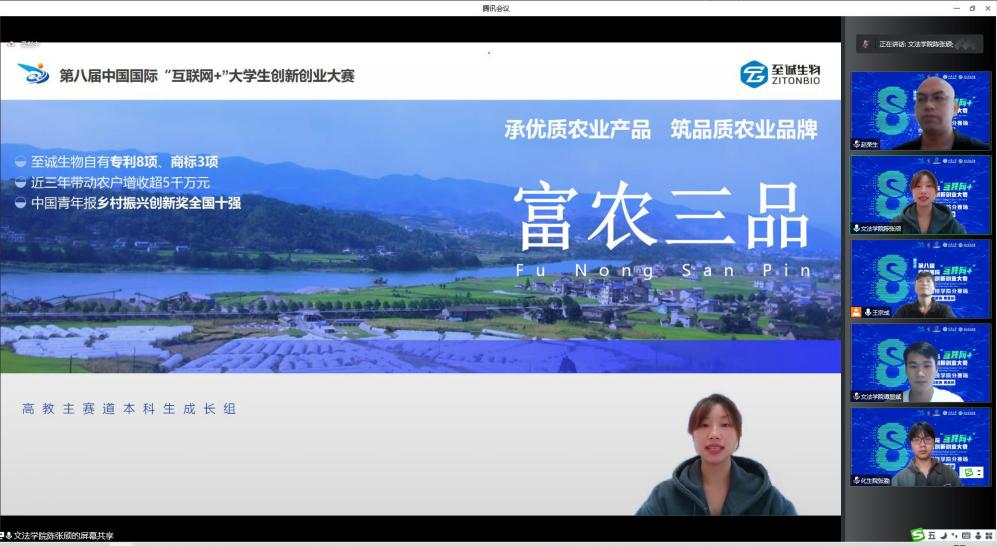 本网讯(通讯员: 赵荣生)近日,教育部公布第八届中国国际“互联网+”大学生创新创业大赛总决赛现场比赛项目名单。我校“富农三品”项目从各省推荐参加全国总决赛网络评审的2800个项目中脱颖而出,晋级“高教主赛道全国金奖争夺赛”。面对突如其来的疫情,项目团队严格遵守校园疫情防控要求,积极开展线上交流、学习,以饱满的精神状态和昂扬的斗志投入到全国总决赛的准备工作中。
