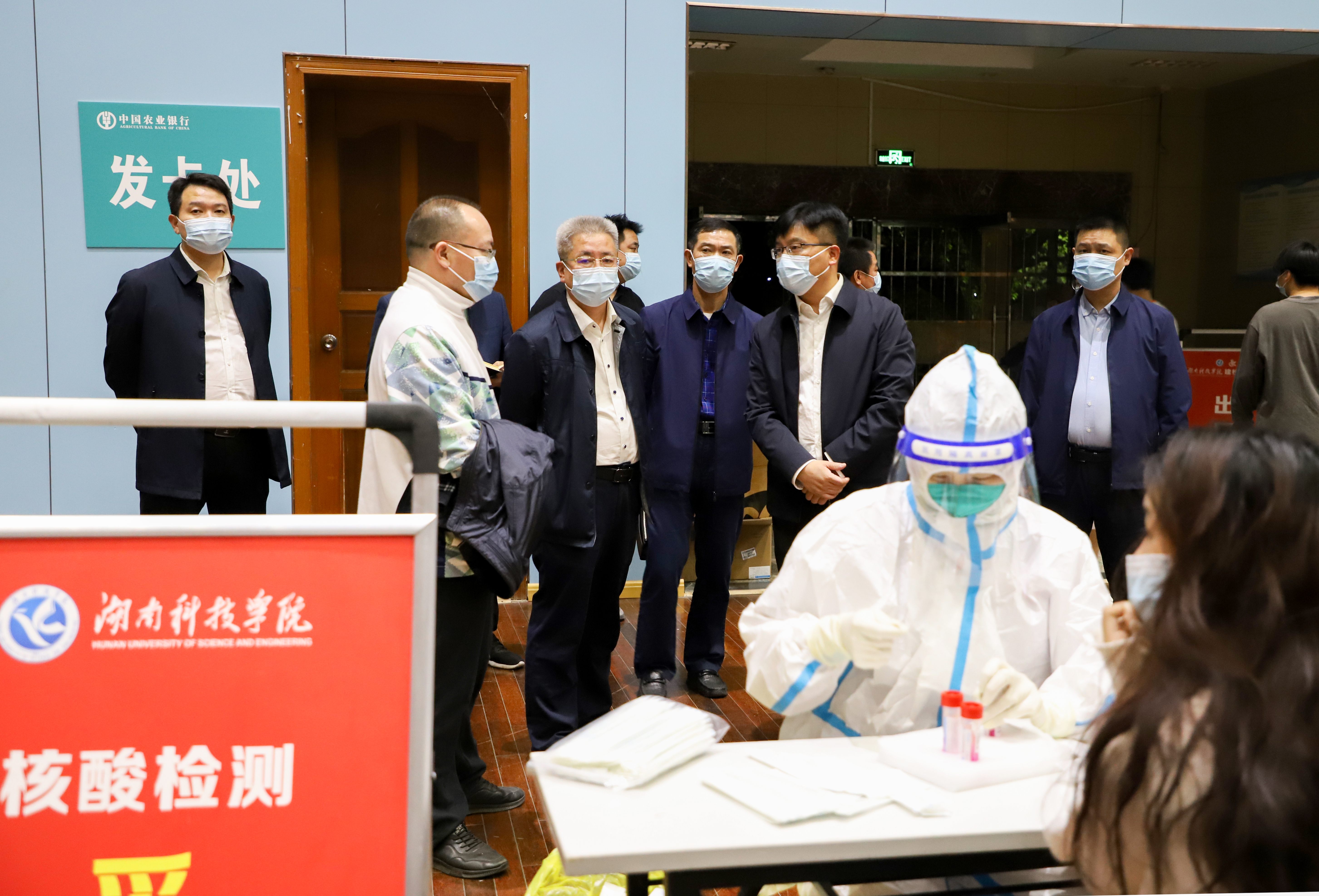 校领导强调,要加强现场秩序维护。根据核酸检测进度组织待检人员分批次、分时段有序参加检测,做好检测现场待检师生员工的引导、调度工作,确保按照时限要求,高效、快速完成核酸检测采样工作,严格落实戴口罩、“一米线”、环境消杀等防控措施。要做实做细各项服务保障工作。优化服务流程,减少师生排队等待时间,落实好关心关爱措施,为全体师生和一线工作人员、医护人员提供更加良好的环境。