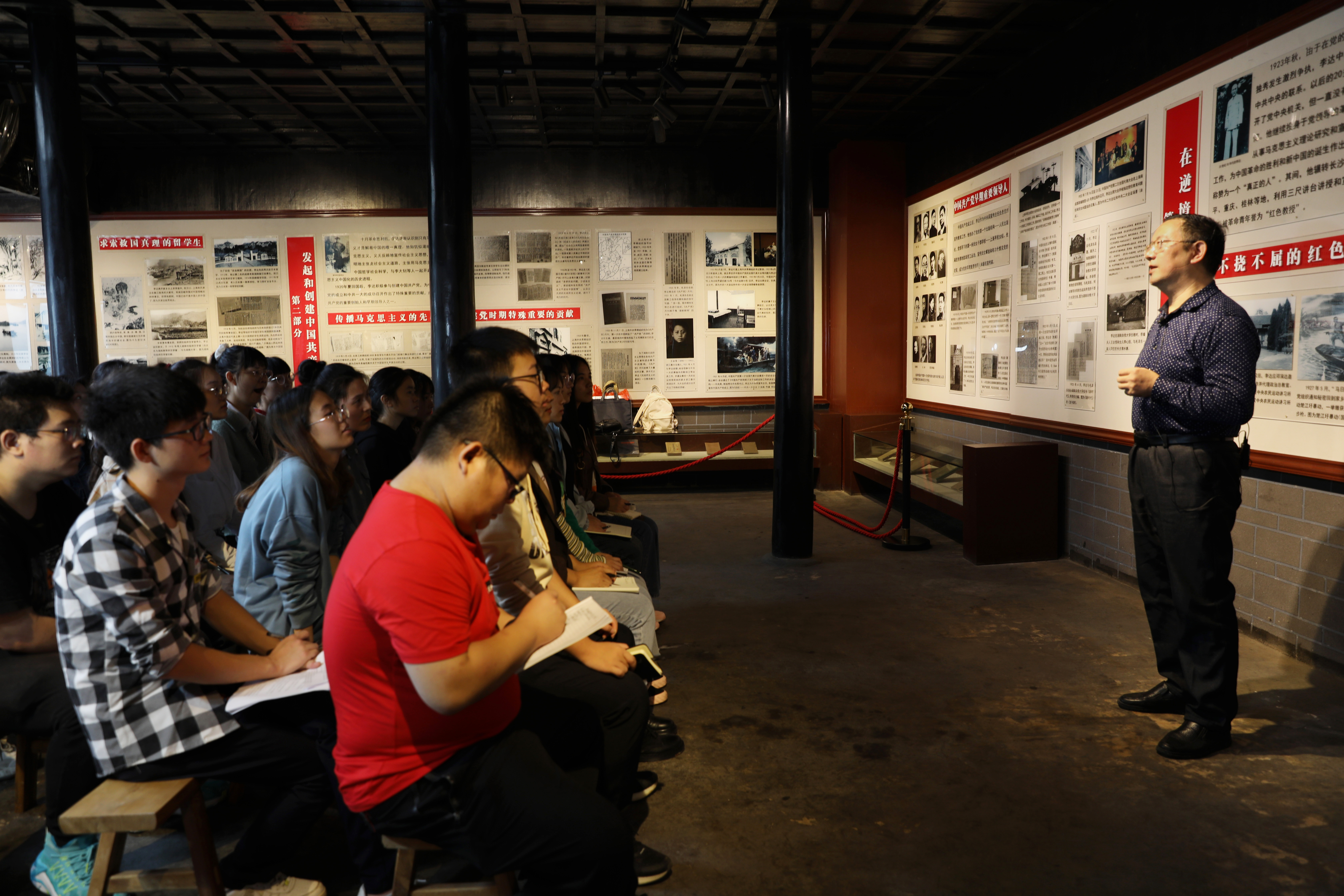 廖雅琴向同学们介绍了永州红色文化遗址分布的基本情况,鼓励大家在奋斗中践行马克思主义,争做坚定有为的青年马克思主义者。邓怡舟以李达艰苦曲折的革命人生为主线,为同学们介绍了李达的生平事迹,分享了李达探求救国救民真理的故事,向大家讲述了李达为捍卫马克思主义真理生命不息、奋斗不止的初心使命。“你心中的李达是一个什么样的人?”“为什么毛泽东主席称李达同志为‘真正的人’?”唐森树随即向同学们抛出两个问题,向同学们讲述了李达坚守信仰、坚守马克思主义道路的故事,并重点讲解了李达为推动马克思主义中国化、时代化、大众化所做出的重要贡献。
