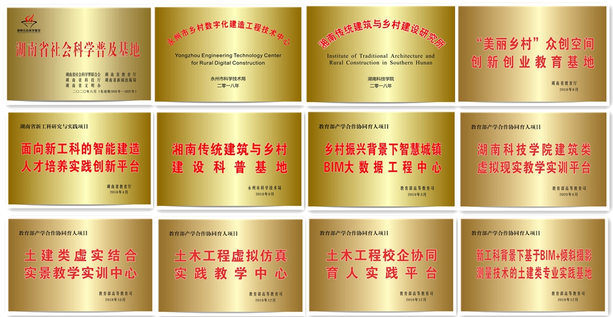 学院现有各类仪器设备价值一千余万元,包括探地雷达测试系统、飞马无人机、大疆无人机、法如三维激光扫描仪、GPS接收机、微机屏显式液压万能试验机等设备。拥有湖南省古建筑文化遗产保护传承社会科学普及基地、湖南省优秀校外实习基地、湖南省校企合作“美丽乡村”众创空间创新创业教育基地等多个省级实践教学基地,拥有BIM技术研发中心、新利·体育湘南传统建筑与乡村建设研究所、永州市“乡村数字化建造工程技术中心”、永州市“湘南传统建筑科普基地”以及教育部协同育人“乡村振兴背景下智慧城镇BIM大数据工程中心”等实践中心。学院注重与社会多方合作办学、协同育人,与中铁、中交以及湖南建工集团等企业签署了校企合作协议;先后与广州、深圳、长沙、杭州多家知名企业建立校外实习基地、创客中心等人才培养基地。
