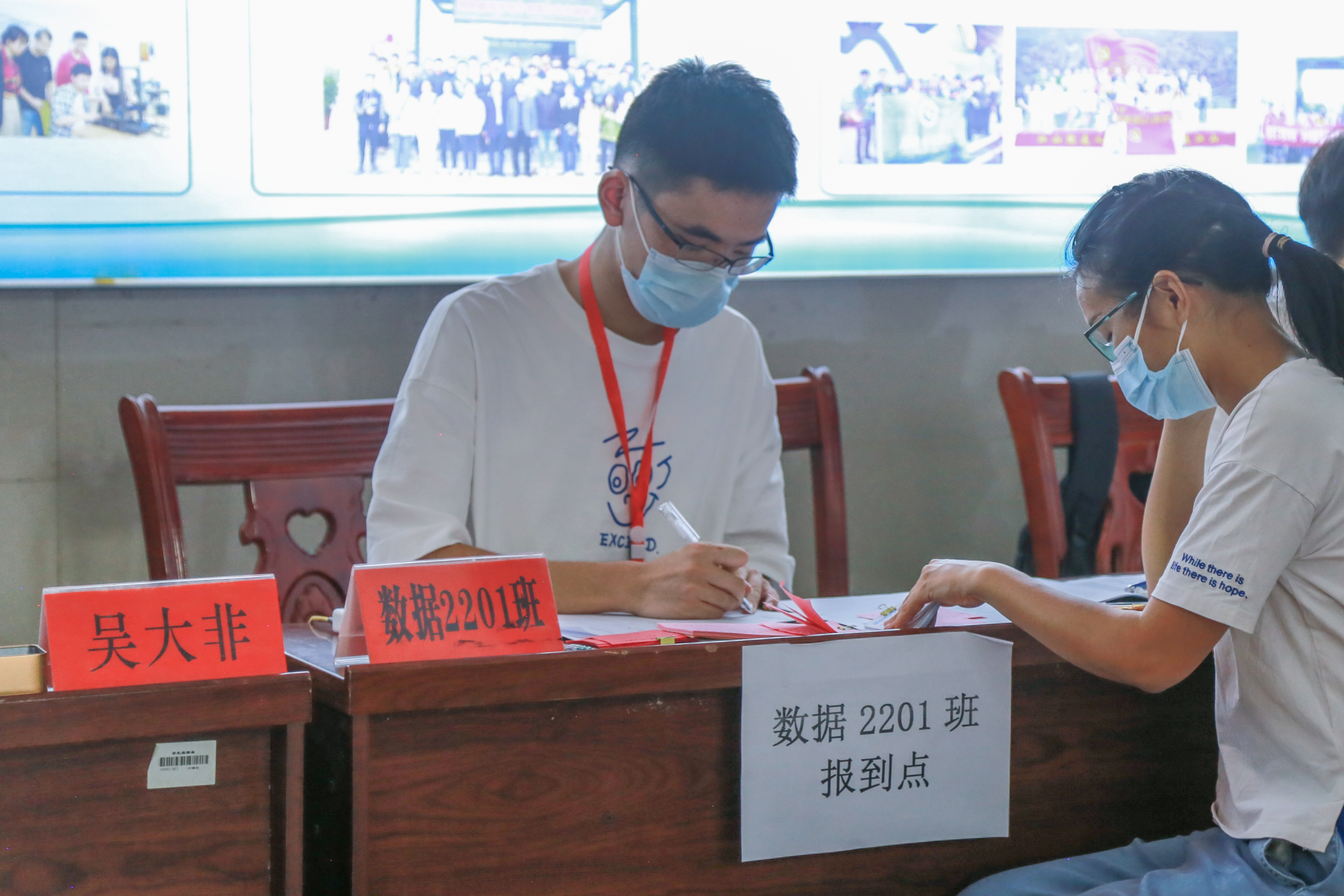 各教学学院也将科院温度落实到实处,从特色出发为新生带来多样的入学体验:美术与艺术设计学院推出热心“小螺号”服务车队,为新生代运行李;智能制造学院推出“开学第一张照片”、“喜迎二十大”知识竞答得校徽活动、“给四年后的我”明信片墙,给新生满满的仪式感。