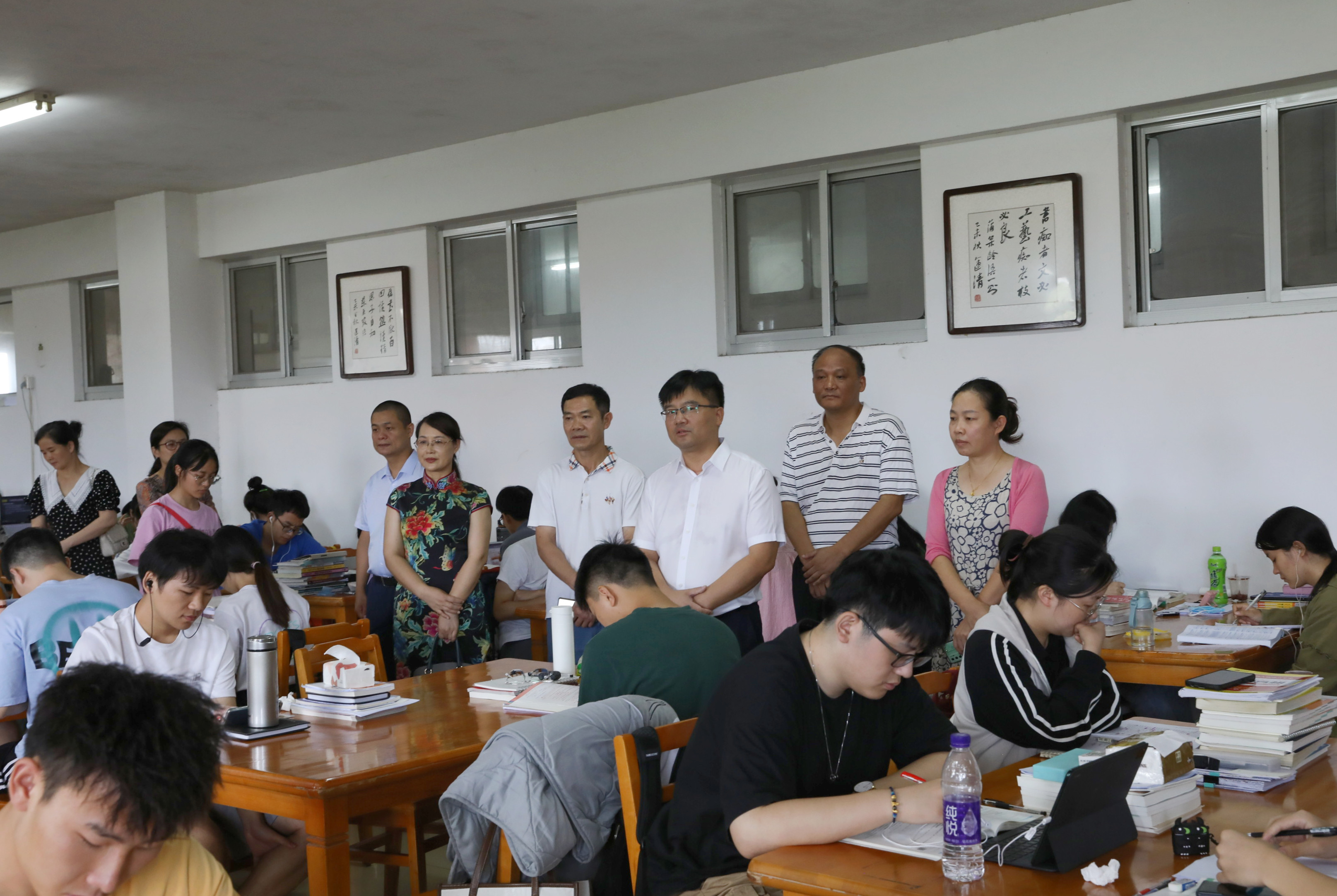 在招生录取室,校领导仔细询问今年招生录取工作的时间安排、前期招生宣传情况,认真了解今年我校在湘投档分数线、各专业的线上招录情况以及录取通知书的设计及寄送等情况。在图书馆,李钢勉励暑期留校的同学们要坚定信念,明确目标,注重方法,提高效率,保持良好心态,做到劳逸结合、张弛有度,同时他还叮嘱大家要注意饮食安全,防溺水,严格遵守学校疫情防控相关规定。在医务室,校领导看望慰问在岗一线医护人员,检查相关工作开展情况。在学校东门,校领导查看人员、车辆检查登记记录册。