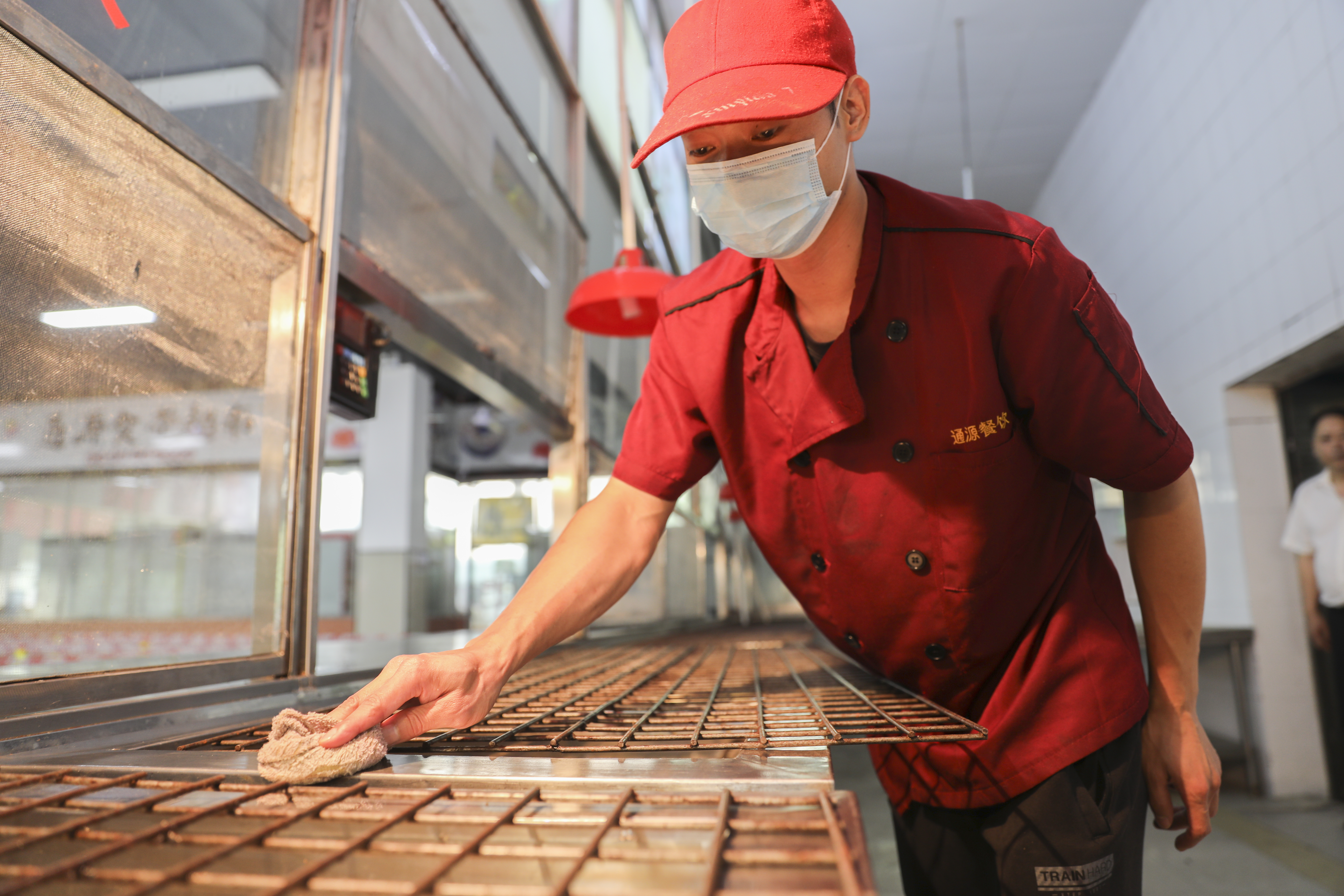 学校统一发放“碗筷勺”,用餐后餐具须自行清洗,在下一次就餐时将饭盒(筷勺盖自行保管)再交由食堂消毒,并替换新的饭盒就餐。