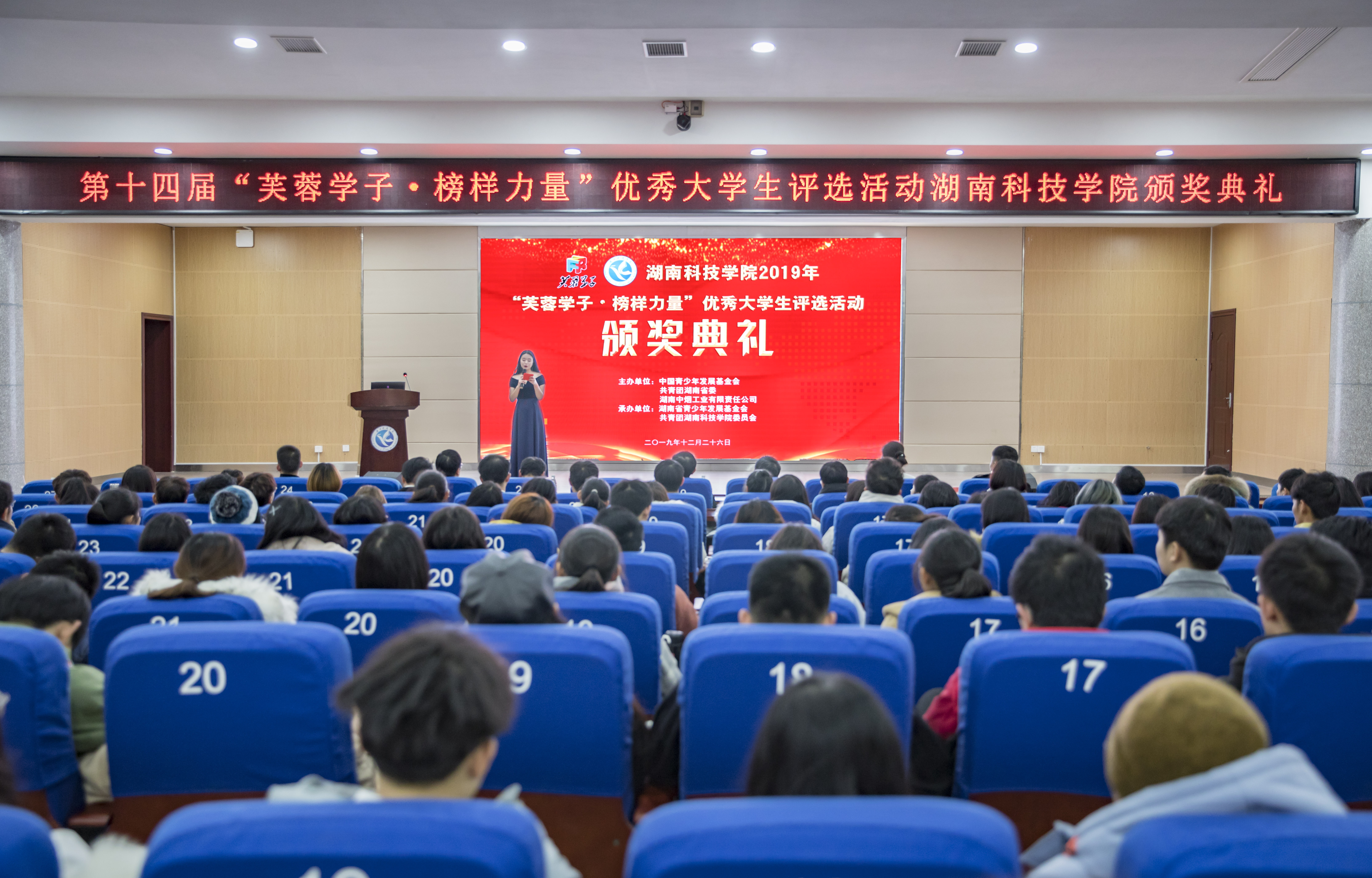 本网讯 12月26日晚,第十四届“芙蓉学子·榜样力量”新利·体育优秀大学生评选活动颁奖典礼在潇湘大讲堂举行。副校长吴小林,宣传统战部、学工部、教务处、科技处、团委、就业创业指导中心等职能部门负责人及600余名学生代表参加。