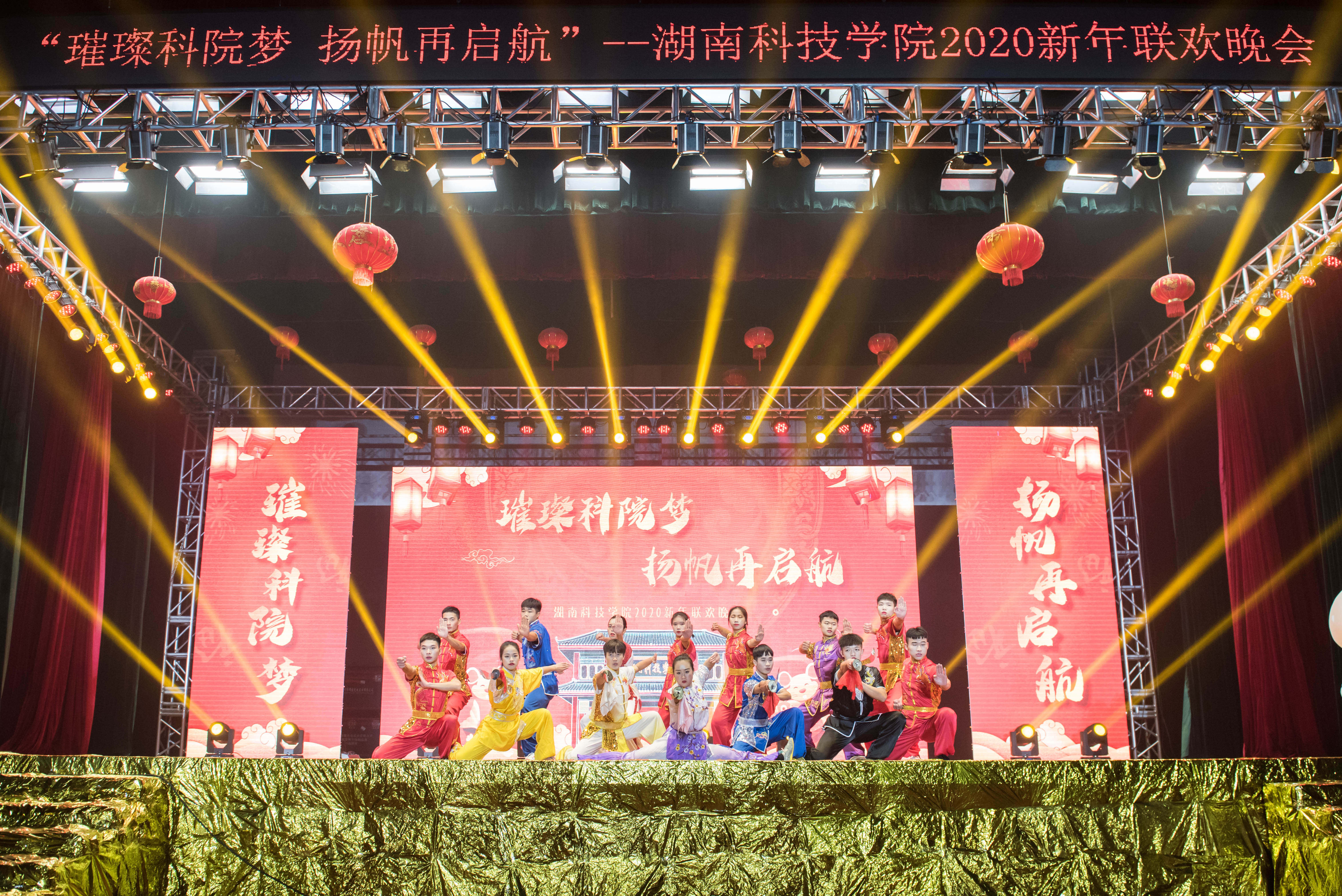 本网讯 12月30日晚,学校举行“璀璨科院梦,扬帆再起航”2020年教职工新年晚会。校党委书记曾宝成,校长李钢,校领导唐艳明、宋宏福、彭立威、李常健、吴小林、程智开,党委委员、组织部长何福林,党委委员、宣传统战部长杨涛,老领导和老同志及各教学学院和职能部门负责人,全校教职工和学生代表近两千人参加。