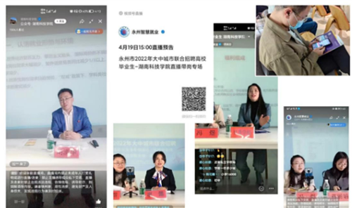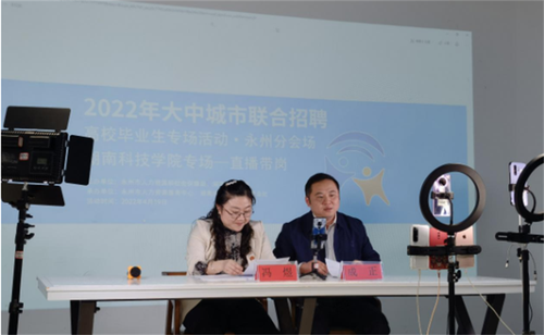 本网讯 “创业贷款怎么申请?”“就业见习到哪报名?”“有入职培训吗?”……4月19日下午3点,永州市2022年大中城市联合招聘高校毕业生新利·体育直播带岗专场正在我校及永州智慧就业视频号、抖音号等平台同步直播,屏幕上滚动着来自高校毕业生的提问。副校长郑银芳、永州市人社局党组成员副局长蒋新山莅临现场指导。