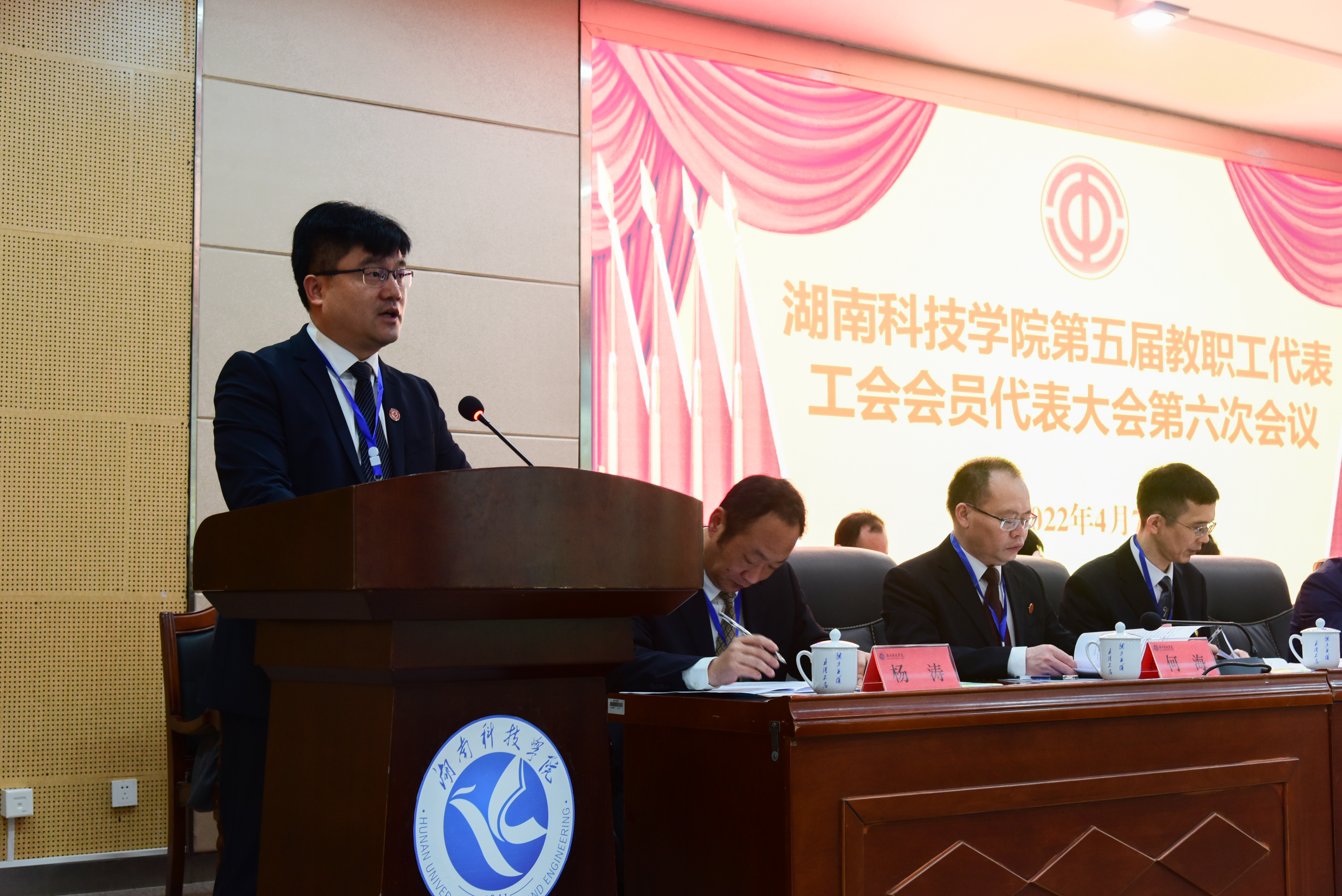 党委委员、副校长、工会主席吴小林作《新利·体育工会工作报告》。他表示,2021年,工会以习近平新时代中国特色社会主义思想为指导,学习贯彻党的十九届六中全会精神、湖南省第十二次党代会精神,在学校党委和省教育工会的领导下,充分发挥工会的桥梁和纽带作用,引领广大教职工为学校实现“十四五”规划开好局起好步建功立业,推动学校各项事业向好发展,取得了显著成效。希望新的一年,工会在学校党委和上级工会的领导下,在学校行政的大力支持下,忠诚履职、敢于担当、积极作为、开拓创新,积极落实学校党政的各项部署,组织引导教职工共谋学校发展大计,促进形成广泛合力,支持、参与、推进学校的改革与发展,围绕我校的“双一流”建设和“升硕工程”,做出应有的贡献。